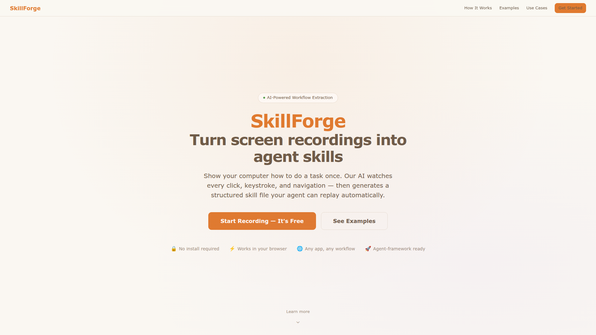 SkillForge turns screen recordings into reusable, agent-ready automation skills. It enables teams to capture cross-application workflows as demonstrations and convert them into steps that AI agents can replay, reducing the need for manual scripting when automating routine processes.