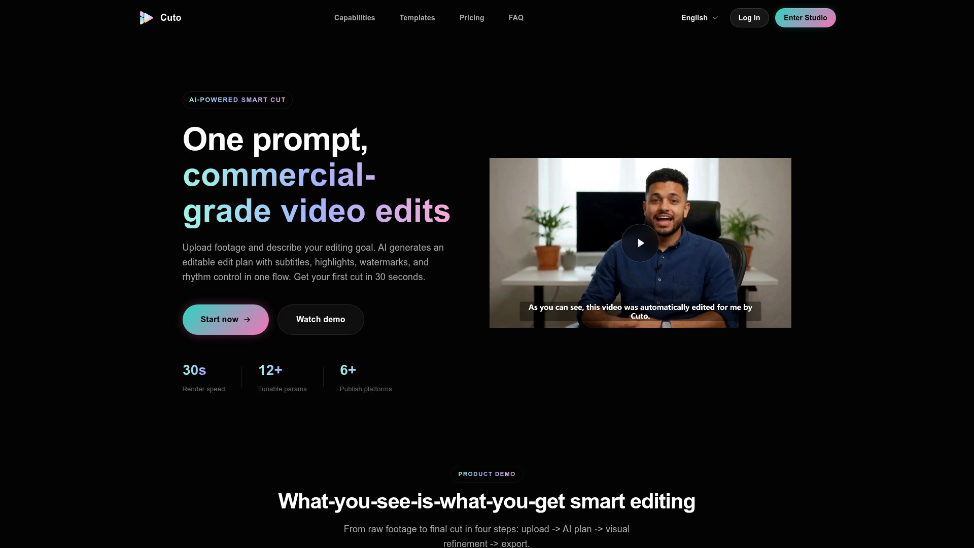 Cuto is a video editing tool that uses AI-assisted edit planning to speed up producing polished clips. It helps generate structured edits from a prompt and enhances outputs with features such as subtitle creation, highlight refinement, and branding elements like watermarks for consistent, commercial-grade results.