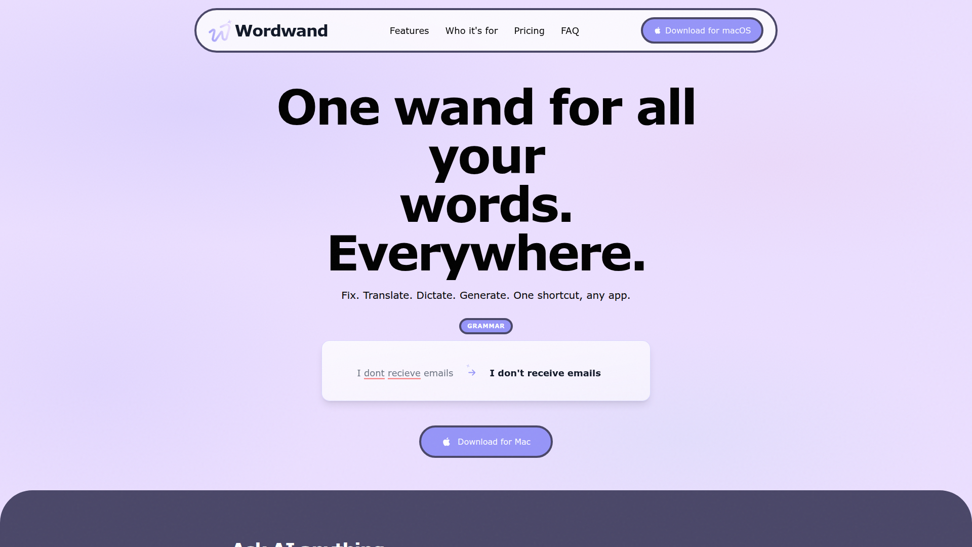 An inline writing and assistance tool that brings AI directly into any text field so users can ask questions and receive answers without switching contexts. It also supports voice dictation and text-to-speech listening modes to speed up writing, editing, and consuming text across applications.