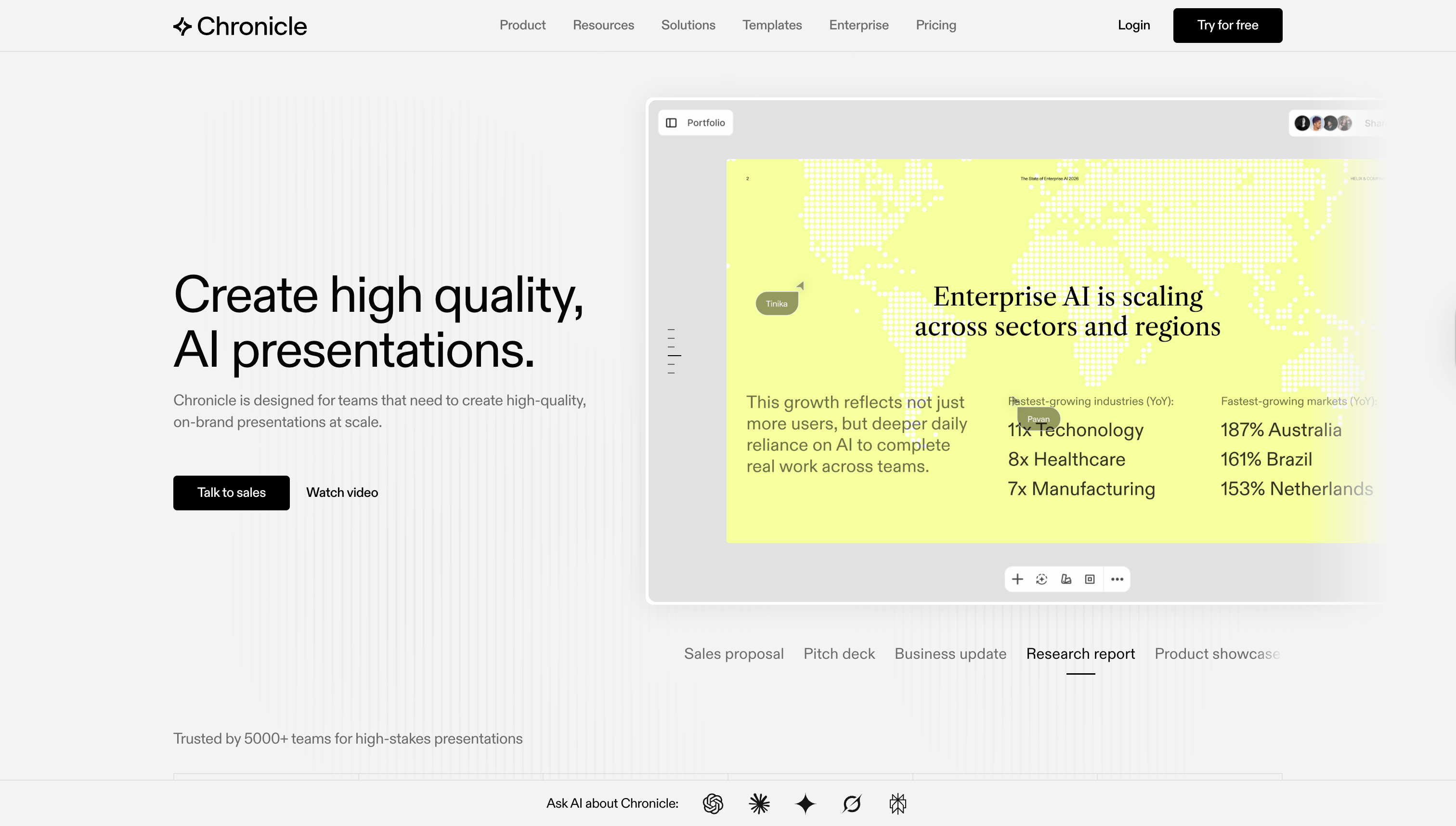 An AI-assisted presentation maker that generates polished, on-brand slide decks from prompts, notes, or rough ideas, then provides robust editing controls for fine-tuning