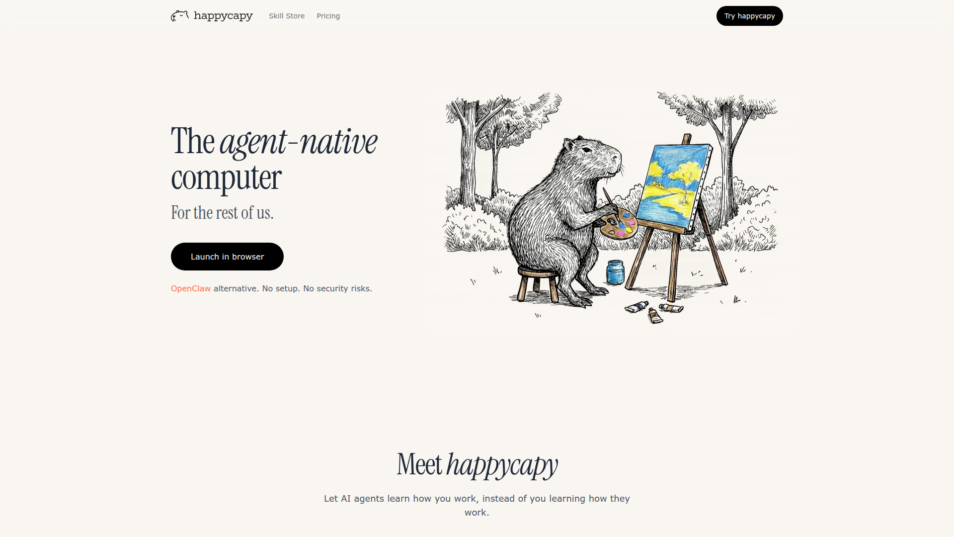 happycapy is a browser-based agent-native computing platform that runs Claude Code inside an isolated sandbox environment. Users assign tasks to AI agents using natural language or prebuilt skills, and agents complete work in the background, delivering results via email. It targets people who want AI to handle tasks like design, writing, and research without command-line knowledge or software installation.