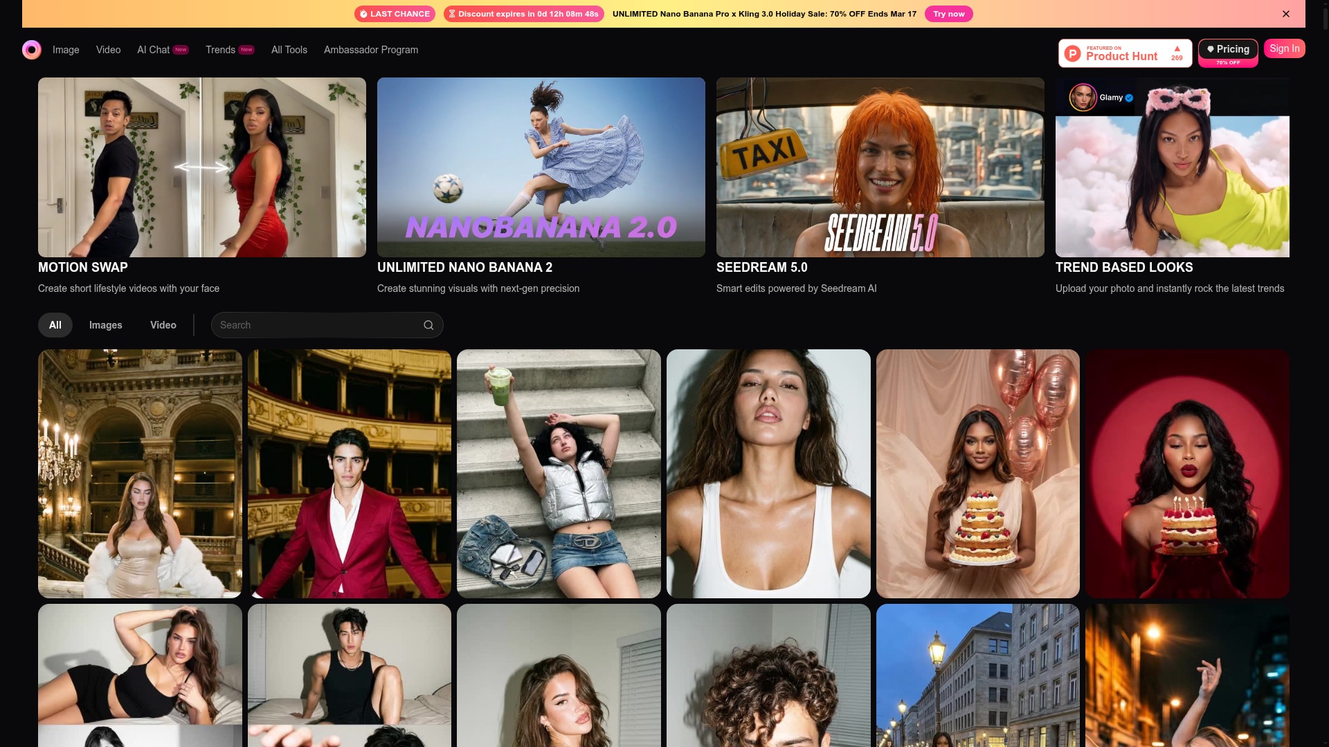 Generates videos and images with trending visual effects