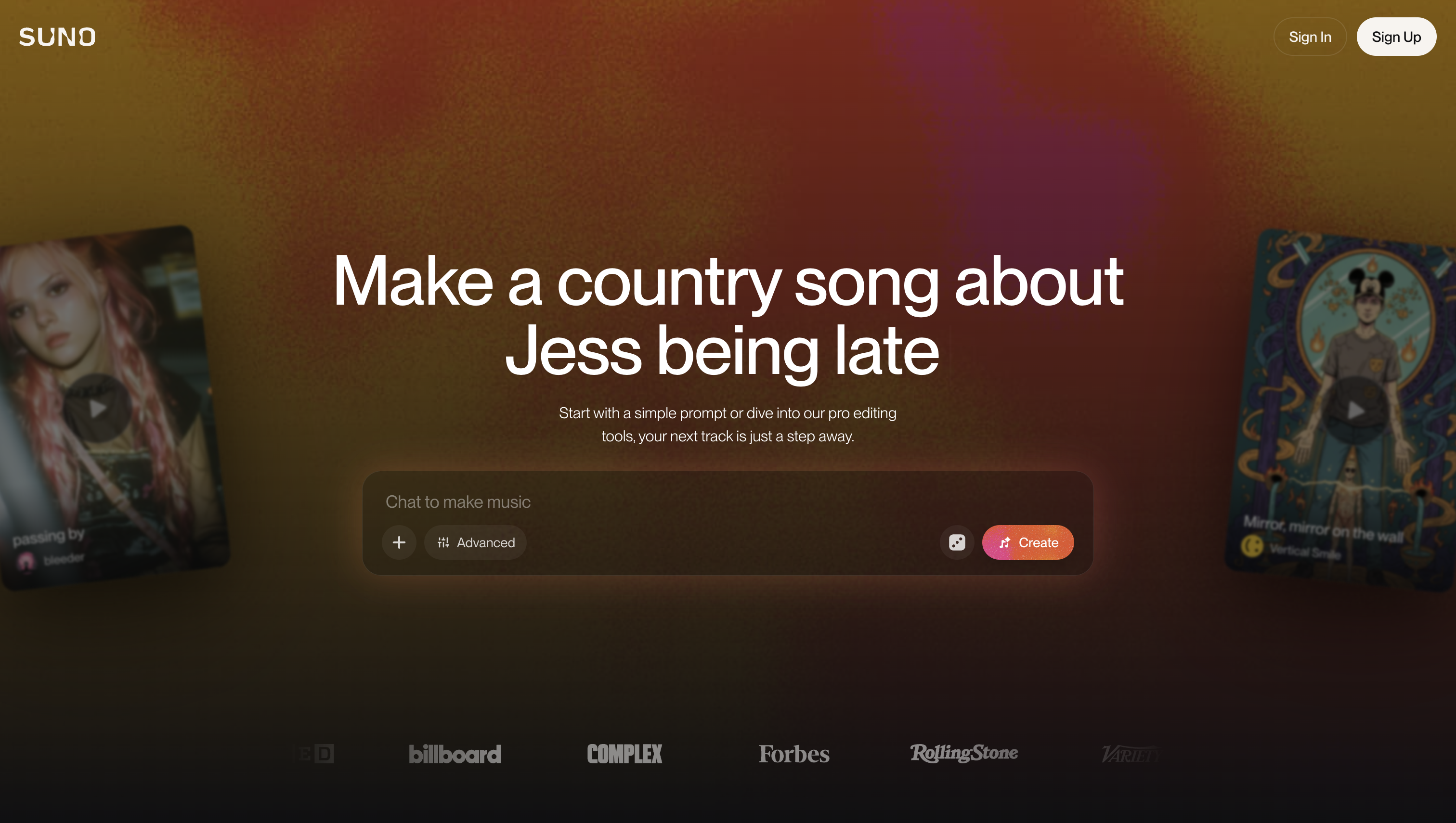 Suno is an AI music generator that creates complete, original songs with vocals, lyrics, and full production from simple text prompts in under a minute. Used by first-time creators and professional producers alike, it supports all genres and offers both free and paid plans with commercial use rights and advanced editing features.
