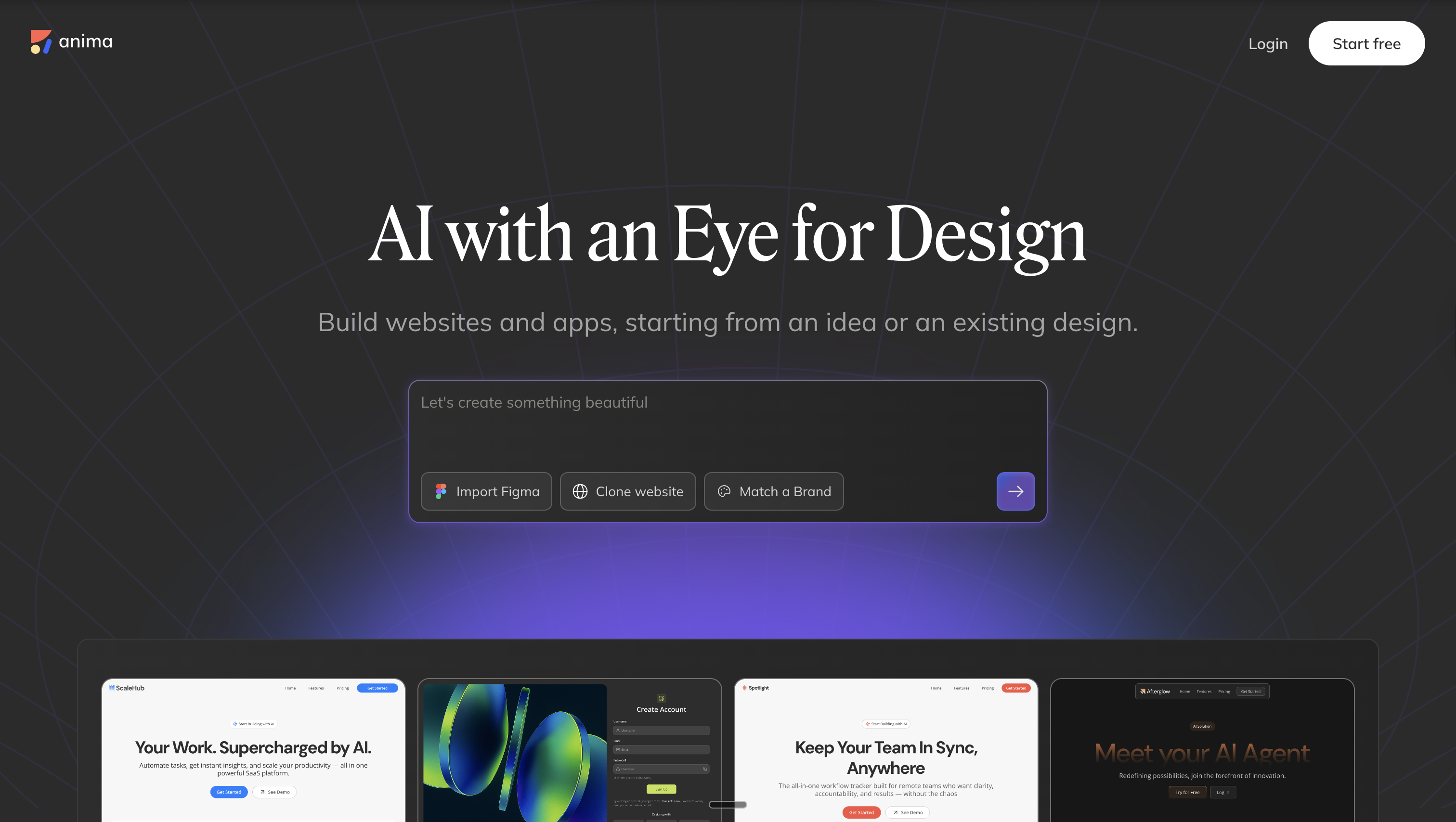 Anima is a design-aware AI agent that bridges creativity and code by generating real production-ready applications from Figma files, URLs, or text prompts. It serves product teams building directly and coding platforms integrating via API, powering services like Bolt.new and Replit with design intelligence capabilities.