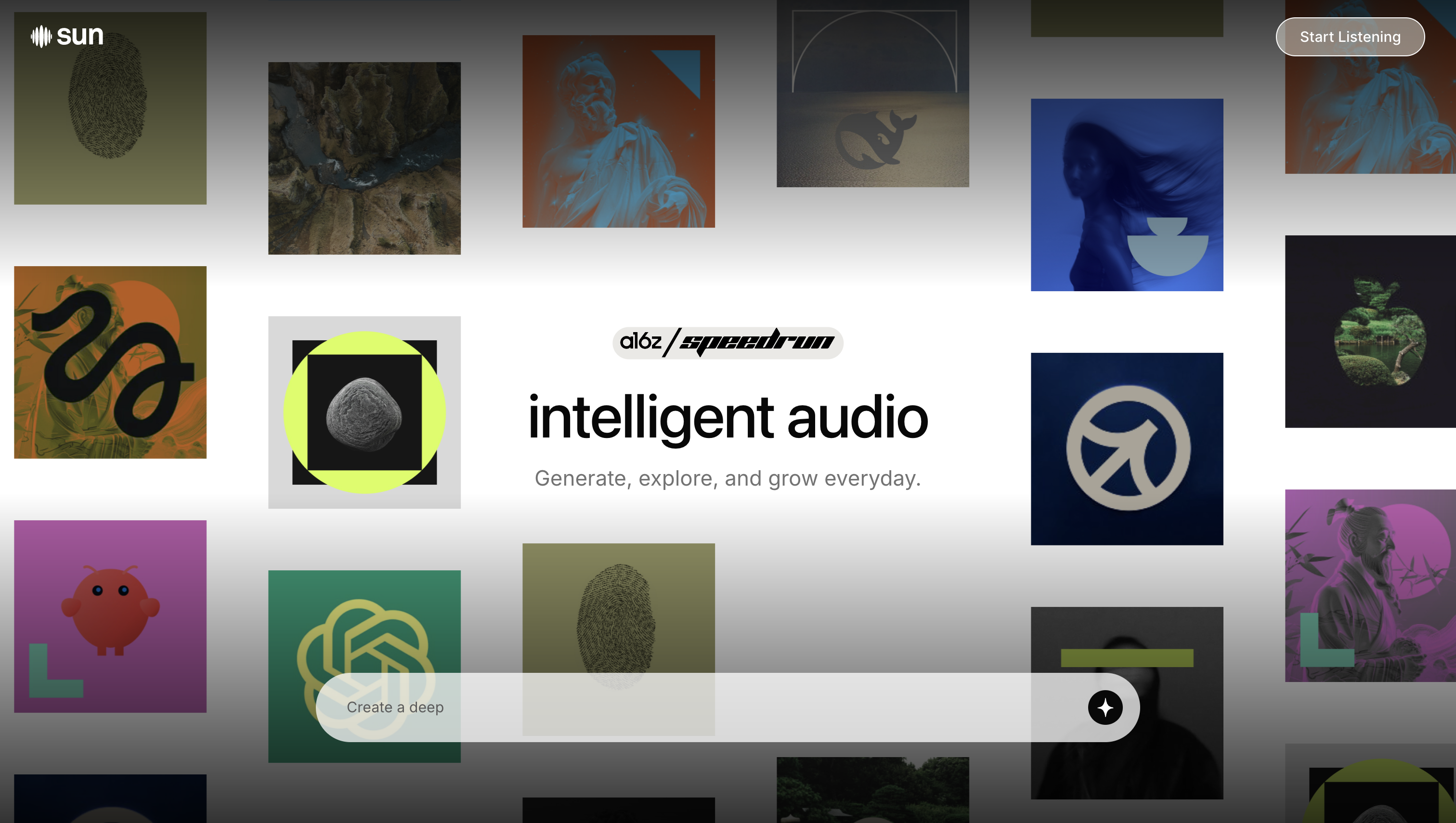 SUN is a mobile app that converts any topic, question, or nonfiction book into a structured, narrated audio course or summary using its Genesis 2.0 model. Users type a prompt and receive a multi-chapter audio lesson with adjustable length, voice style, and depth level. The app includes real-time in-playback Q&A and curated learning challenges covering entrepreneurship, health, and AI literacy.